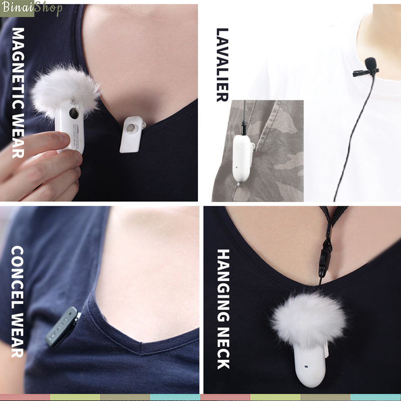 - Hai tùy chọn micro built-in sẵn trên thân micro hoặc micro lavalier cài áo có thể sử dụng đa dạng trong nhiều tính huống.